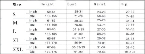 | Size | XXS | XS | S | M | L | XL | XXL | ||||||||||||